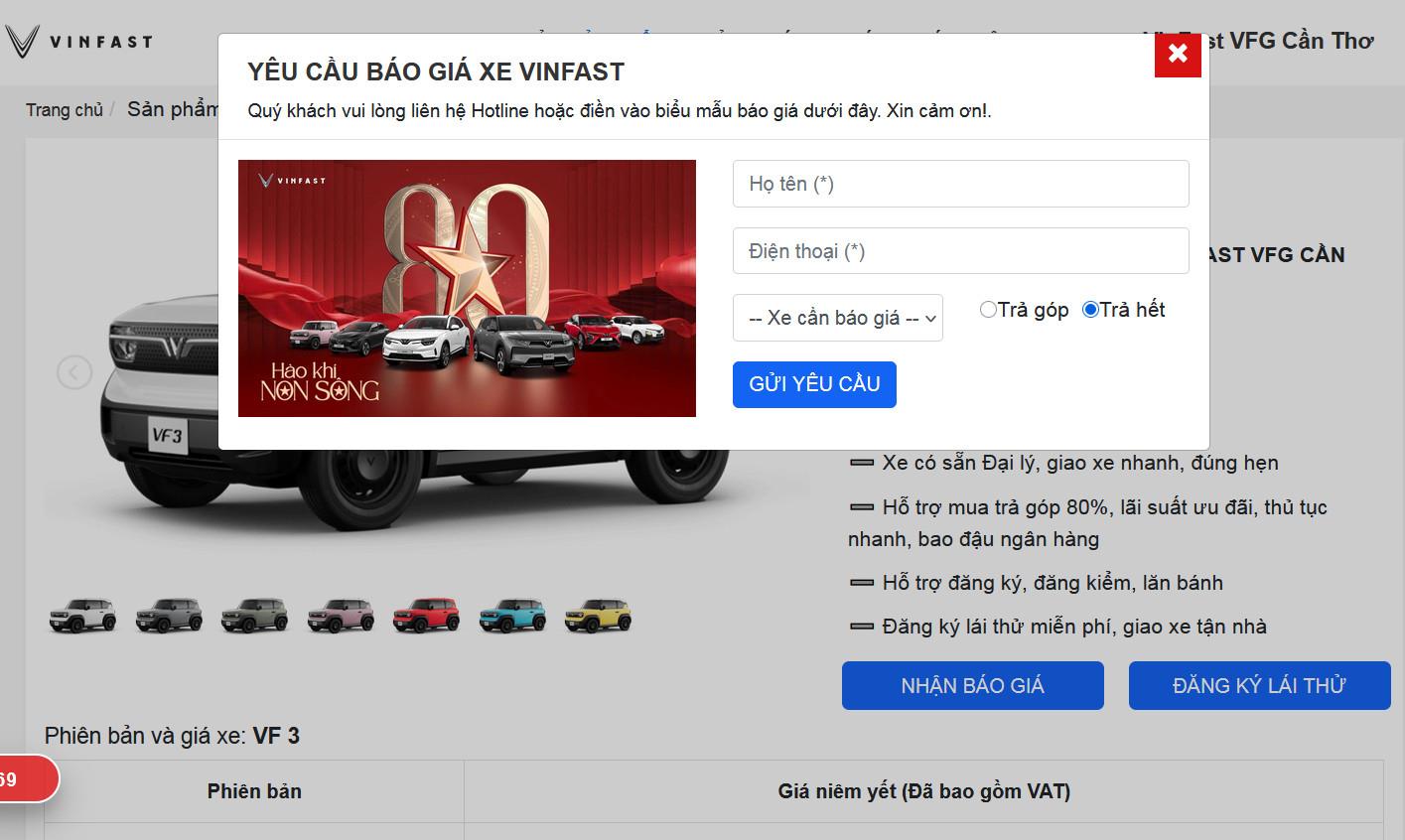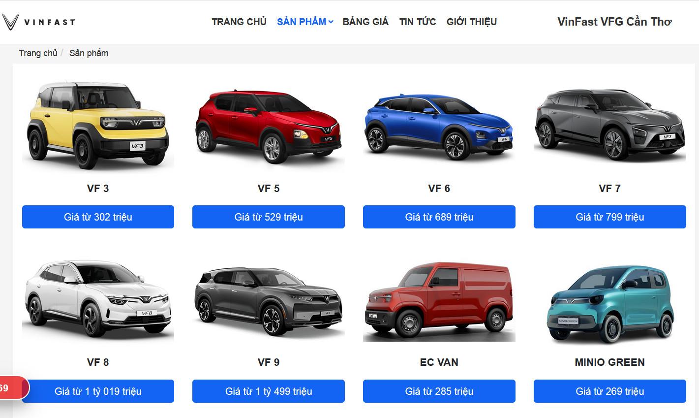 Mẫu web VinFast