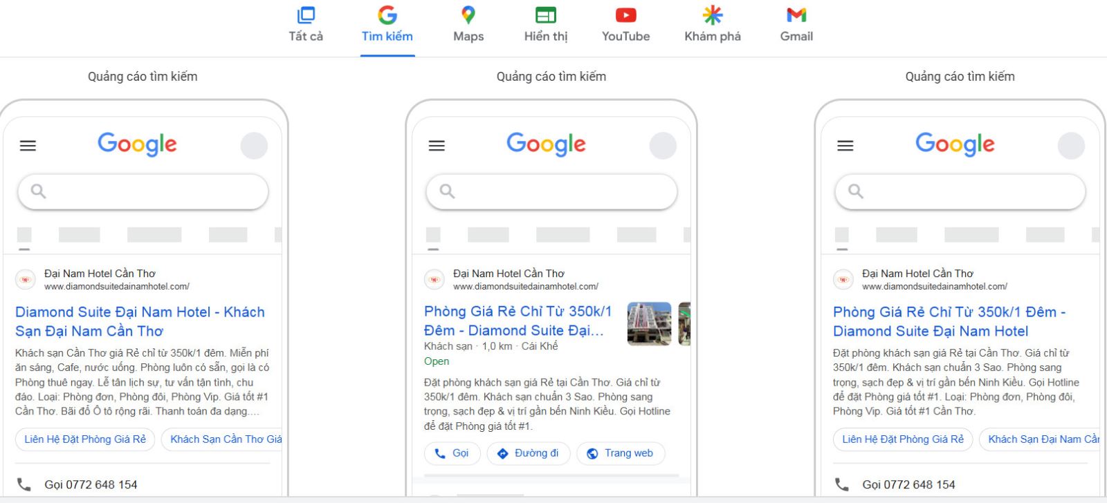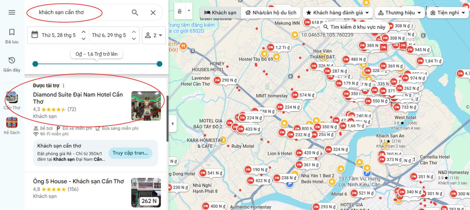 Quảng cáo Google Map khách sạn Diamond Suite Đại Nam Hotel Cần Thơ